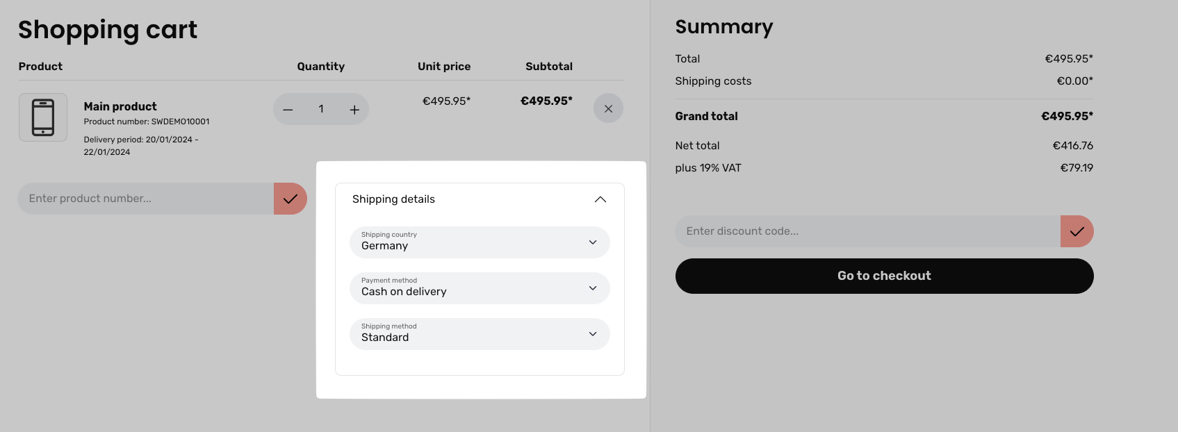 If the option **Shipping details expanded (2)** is activated, the shipping details can already be displayed in the expanded state in the shopping cart. \