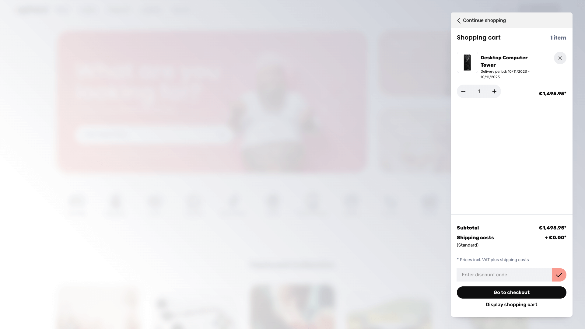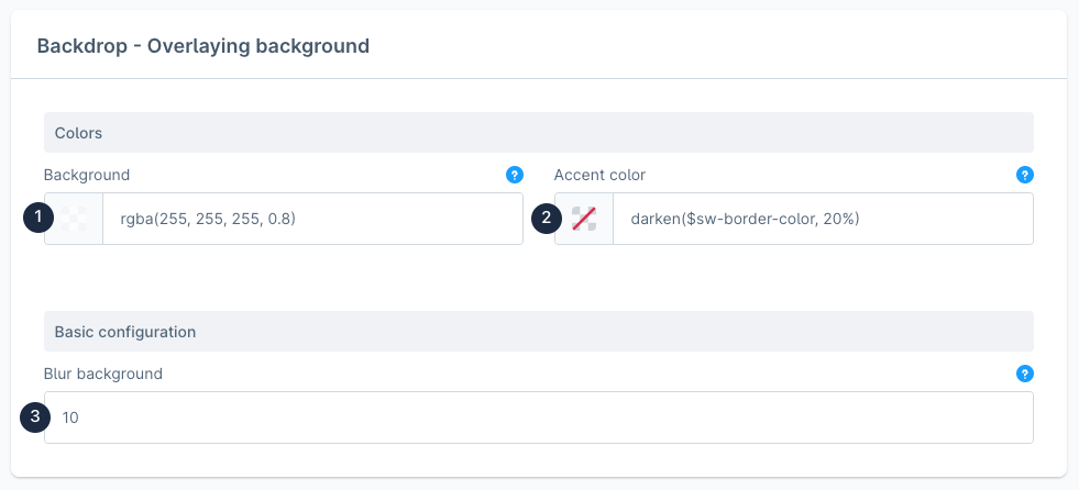 The shop in the background of the popup or offcanvas can be blurred using the value in the **Blur background (3)** field. This further increases the focus on the foreground element.